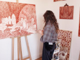 On paper or canvas, her drawings, which the artist started producing obsessively and cathartically from a very young age, become paintings through the use of a substance that is both symbolic and “visceral”: her own blood, which she draws intravenously following a very precise medical protocol devised to not impact her health.
