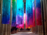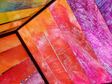 The artist blurs the lines between painting and sculpture by unfurling vibrant arrays of colour in these spaces. Her pieces are characterised by skilful collisions of bright, saturated hues. The energy of the artist's gestures and of the tools she uses (brushes, brooms...) has become increasingly noticeable in the past few years thanks to her use of translucent materials that let the light shine through. The expressive strength of her painting reaches its full potential in action, in the body's involvement in the creative process.