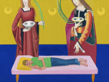 The Most Beautiful Hours – a title unmistakably reminiscent of medieval books of hours, and which openly signifies a graphic connection to them – is a stunning project that translates into visuals the highlights of the artist’s everyday life. The almost permanent presence of a figure that bears her own features seems to support this point of view unambiguously. Whether seen from the back, sideways, face-on, standing or sitting, the depictions of the artist and her friends and relatives introduce us to, invite us to share, and perhaps to relive, these chosen moments. The one who paints the picture, or depicts the situation, is simultaneously a person and a character in it. She sees, sees herself, and is seen, and is therefore the one who has experienced what we see and who lets us see it. […]