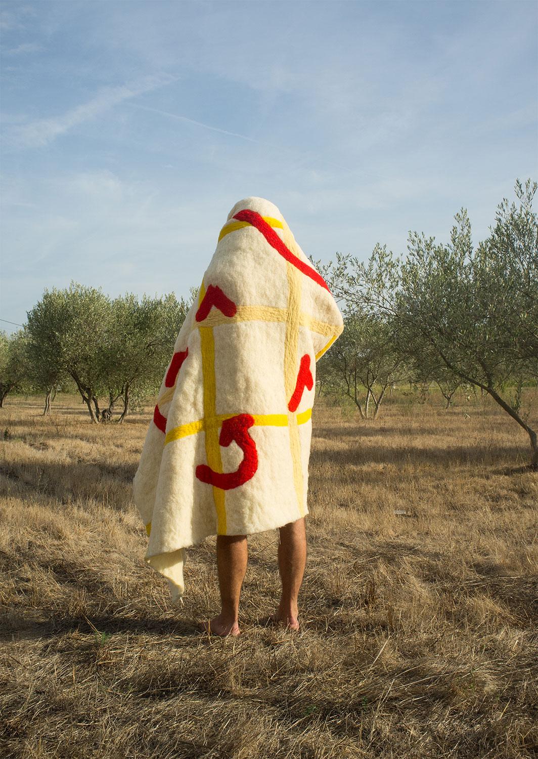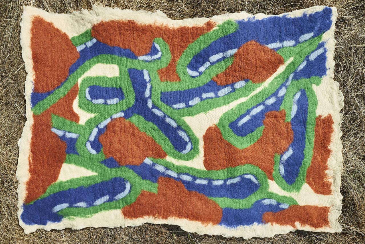 CP: We were interested in felt wall hangings, partly because of the traditional and universal nature of the technique but also for its domestic aspects. We researched the different ways of producing felt. We watched quite a few YouTube tutorials that identify the different production techniques around the world. Then we decided to produce a series of wall hangings for the “Revenir au Monde” (Return to the World) residency, organized by the AFIAC in the agricultural village of Pratviel, in the Tarn, in 2020. We looked for a technique that would be easy to implement, one that would also involve, or at least interest, residents of the village.