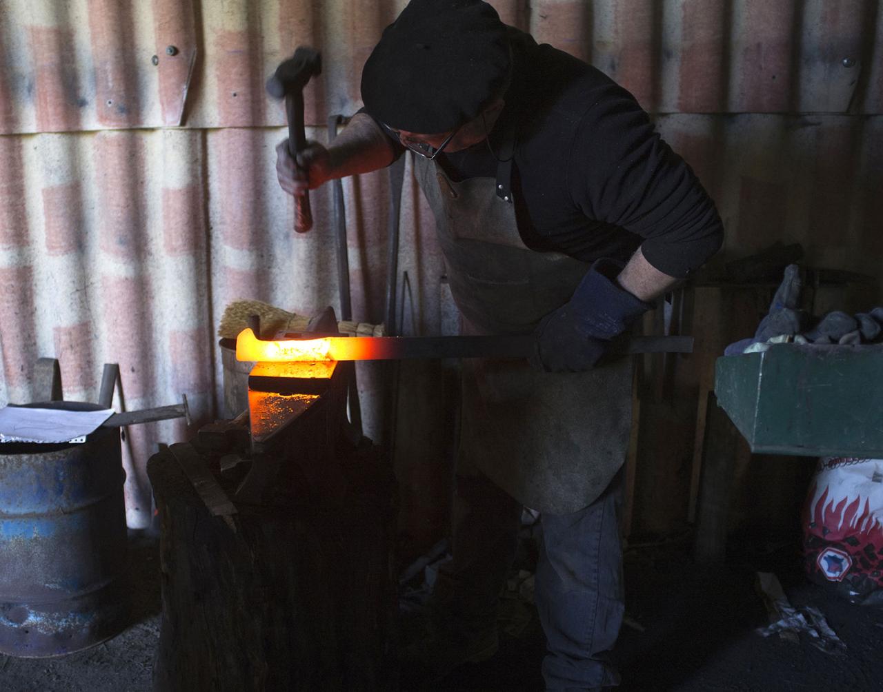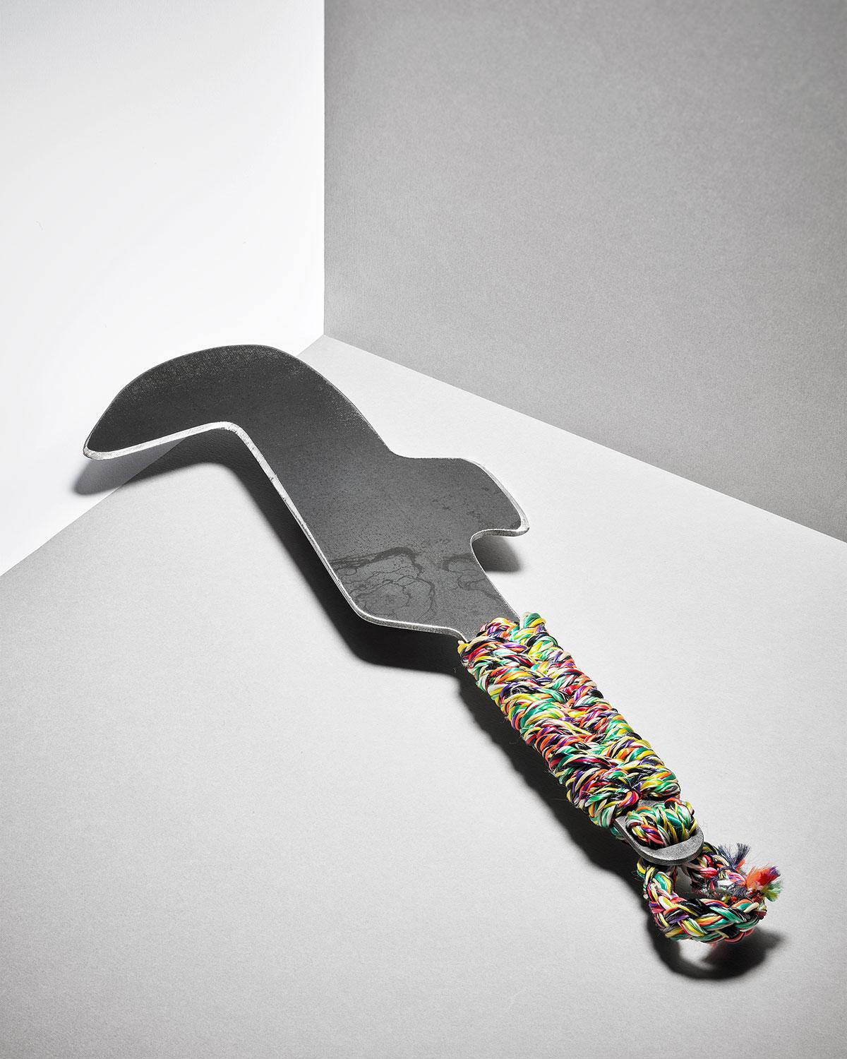 CP: We looked into agricultural manuals, books held by collectors, and found farmers promoting low technology. We also found catalogues of tools from the 1950s that had an incredible number of forms. And we came to understand how these objects can be so fascinating: their shapes, their mysterious purpose, their direct connection to stories from the past. This led us to think about forms and uses, and play around with myths. We wanted to understand the logic behind the manufacture of classic tools, like a hatchet, for example. There happened to be an edge-tool maker in the town next to Nègrepelisse. The edge-tool maker manufactures sharp objects. There are really very few left and now they generally make knives for collectors. The edge-tool maker was happy to work with us on three possible forms, but wasn’t very open to experimentation.