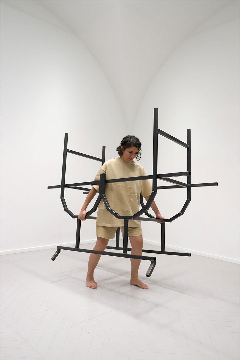 BLP: I have the feeling that you have a very social approach to architecture, and you’re also interested in how architecture can constrain bodies, how norms standardize relationships to space. The exhibition “Oracular Workout,4” which is currently on show at the exhibition space Mécènes du Sud Montpellier-Sète, treats precisely this relationship between athletic bodies, which are necessarily strong, and their space of exercise.