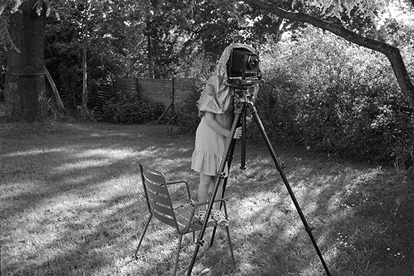 À cet égard, le contraste est saisissant entre la chambre photographique très tôt adoptée pour ses paysages – un appareil encombrant en bois posé sur un trépied qui l’inscrit lourdement dans le sol et qui requiert temps et précision –, et les appareils légers utilisés pour ses journaux – au Rolleiflex s’ajoutent des appareils jetables, un Polaroid, des jouets, voire un sténopé. Daniel Challe se soumet aux accidents produits par ces outils rudimentaires comme les déformations, flous et fuites de lumière dont témoigne Journal de Bretagne, la caméra-jouet (2003-04). Mais lui-même expérimente, recourant à la double exposition ou utilisant la technique à contre-emploi. Dans Journal d’un amateur (depuis 1997), un panoramique jetable lui permet ainsi d’outrer ses compositions et d’appuyer la relation entre le corps et le paysage.