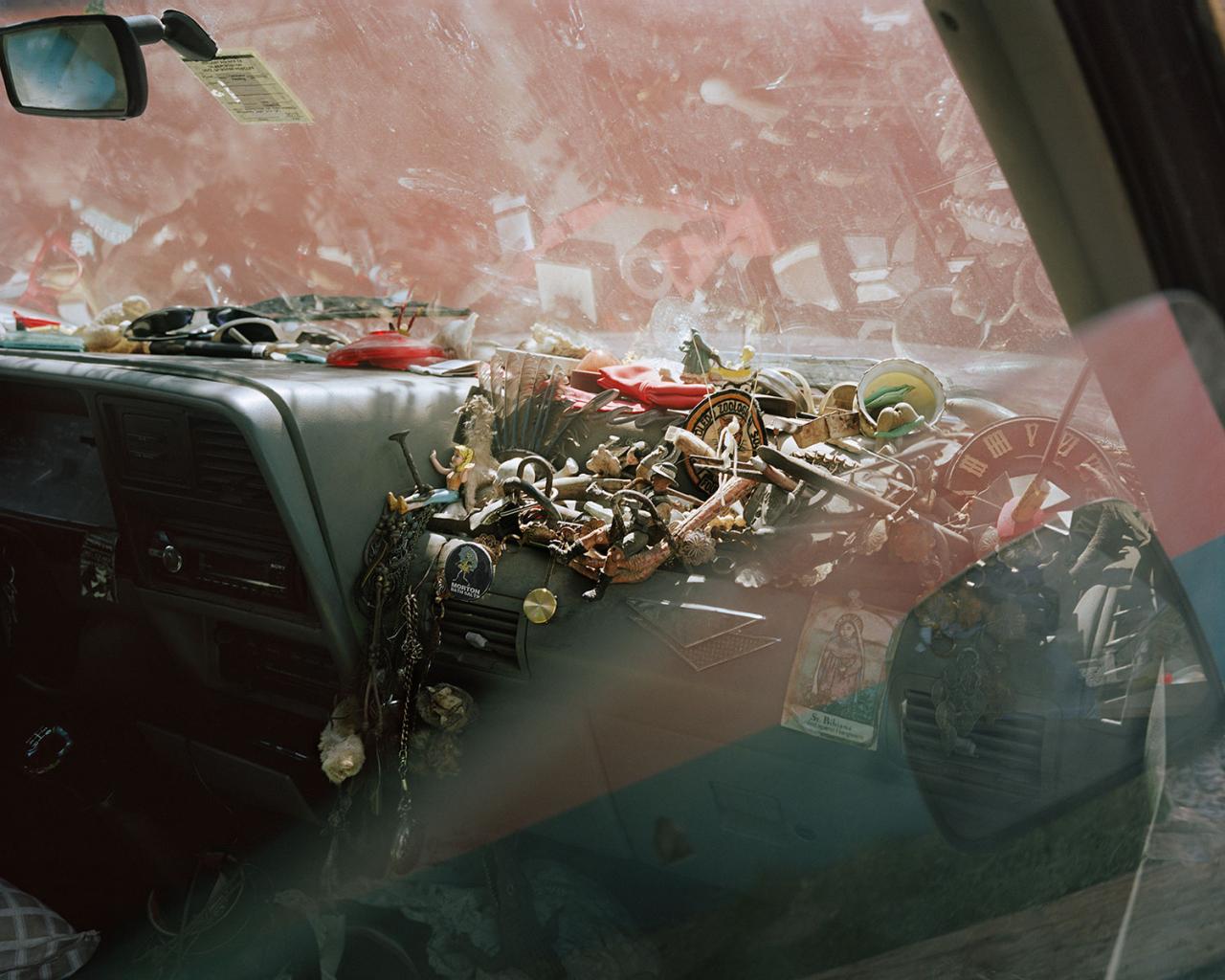 Amulets, No More Death volunteer’s vehicle, Arivaca, AZ, February 2019.
