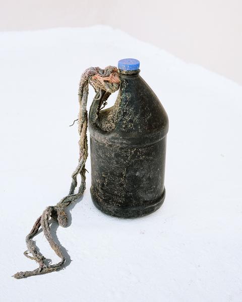 Au départ, l’artiste réalise un film, Dune of Deletes, qui donnera ensuite lieu à la production d’une série photographique de l’ensemble des objets et des « traces » des migrants. L’artiste explique alors qu’il se retrouve dans la position du chasseur tandis qu’il souhaite simplement les rencontrer : « Ils font tout pour disparaître aux yeux de ceux qui les cherchent ». Un des meilleurs exemples pourrait être ce tirage réalisé à partir d’un bidon noir : ces bidons sont des gallons d’eau produits par un industriel mexicain, la couleur noire permettant de ne pas produire de reflets et de ne pas se faire repérer. À vouloir ne pas être visible, ils deviennent une source d’économie et sont plus de 300 par an à disparaître. Aujourd’hui, ils ne seraient que très peu à encore oser le tenter. Notes sur H2 dresse les prémices de ce long travail photographique mené à Sasabe : « un exode ne s’arrête jamais ».