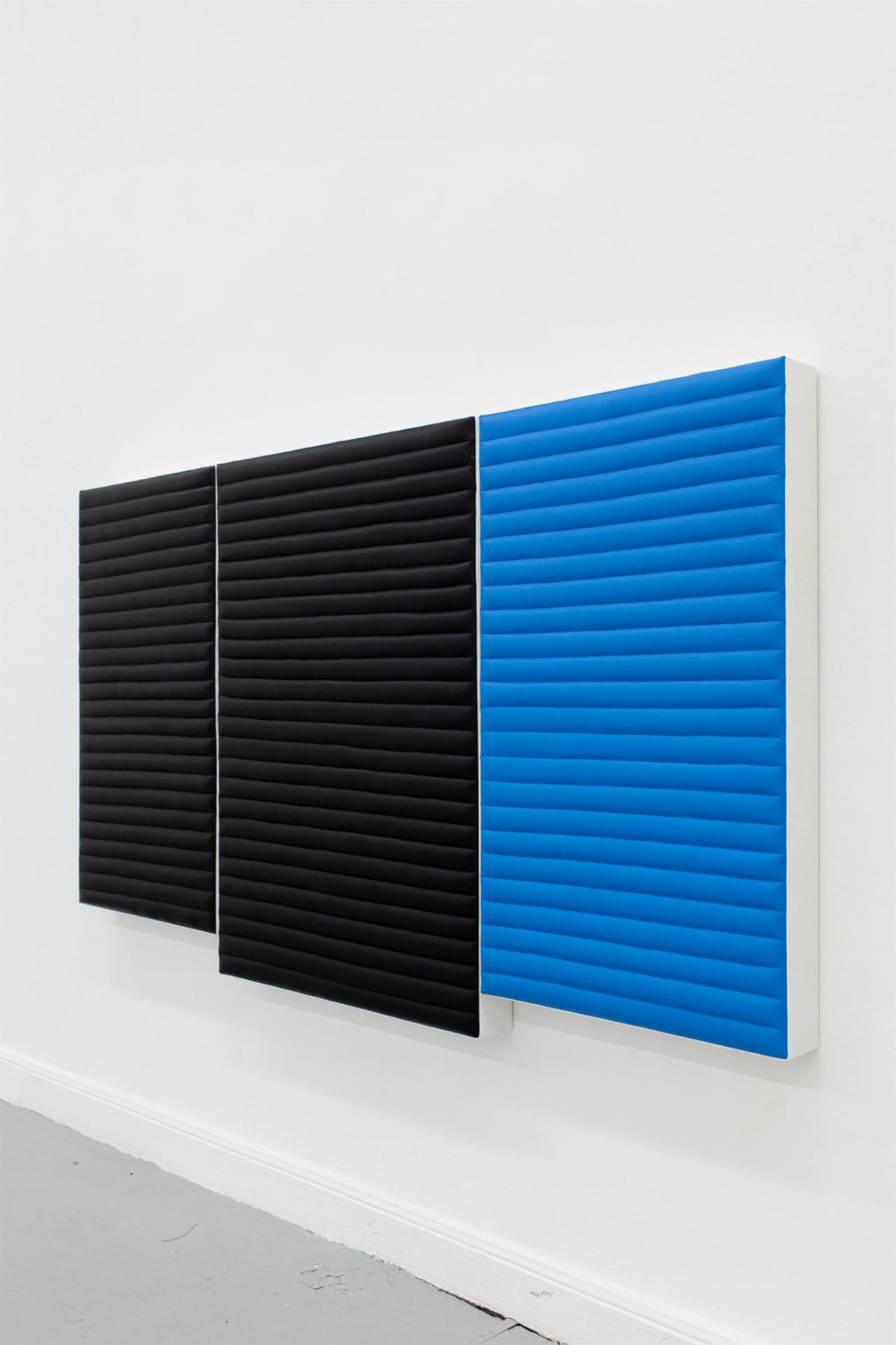 Acrylique, simili cuir, bois, 225 x 124 x 10 cm (2 formats de 69 x 115 x 10 cm et 1 format de 87 x 124 x 10 cm)