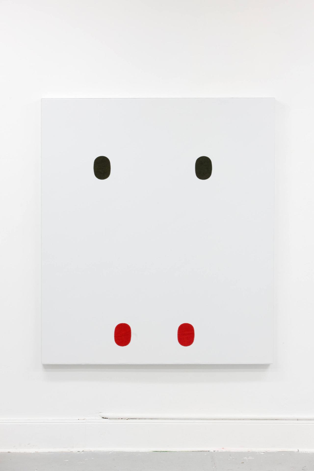 (à gauche) Acrylique sur simili cuir, bois, 140 x 120 x 18 cm