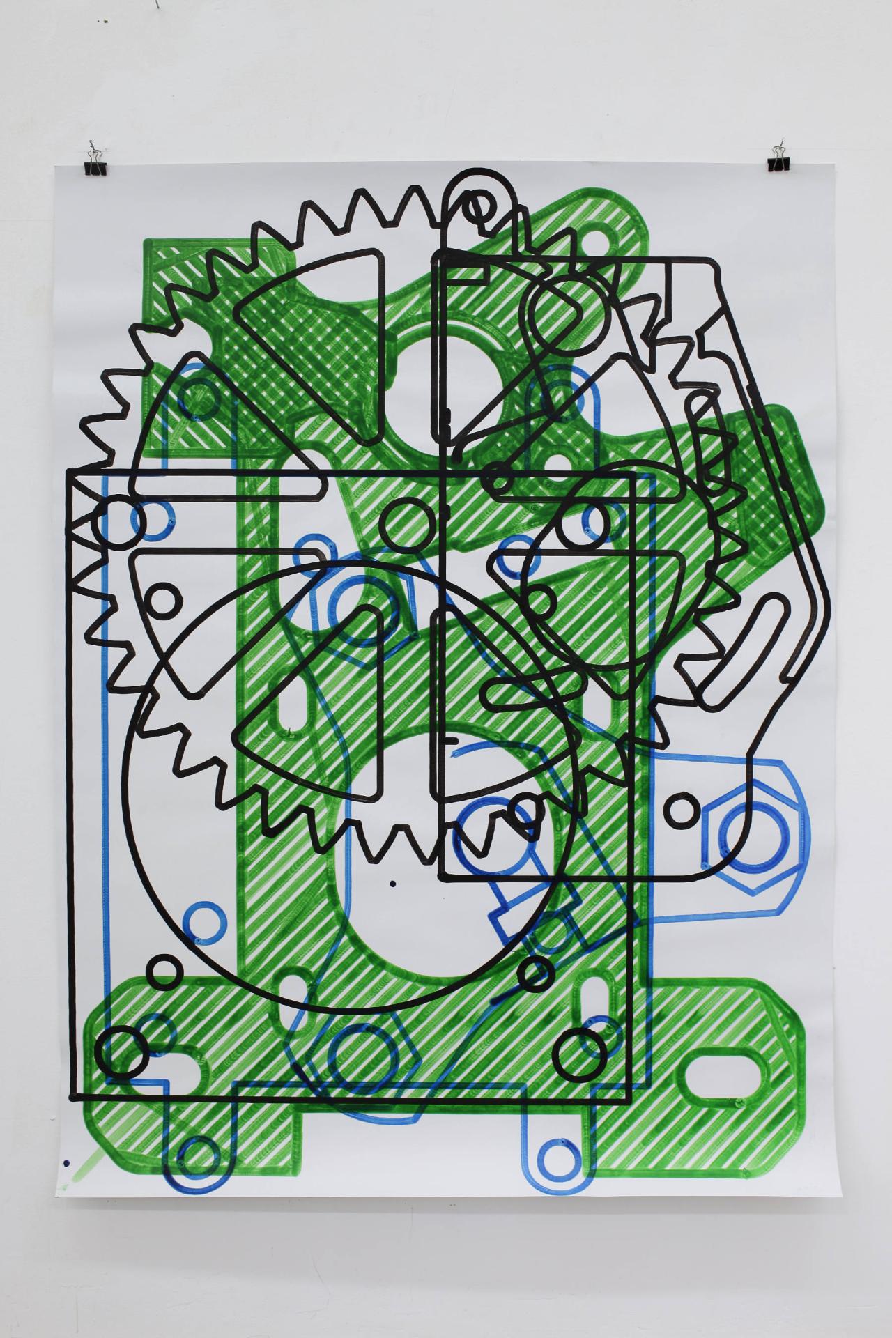 Adhésif et marqueur sur papier, 120 x 160 cm