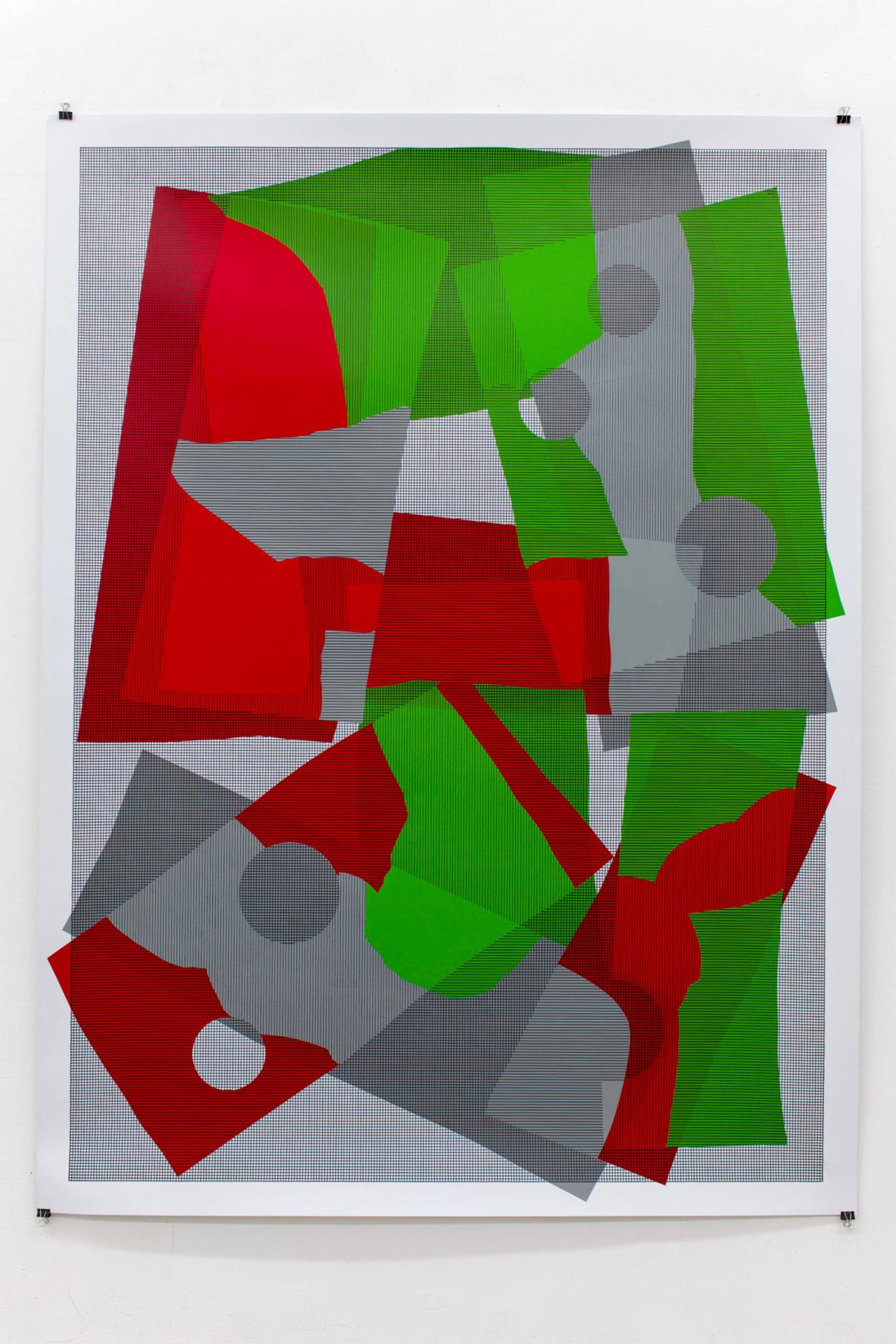 Adhésif et marqueur sur papier couché, 60 x 80 cm