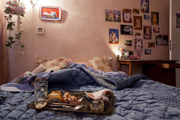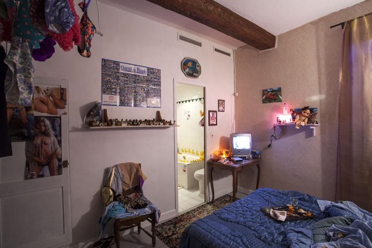 In 2016, she contacted a young man who had a fetish about balloons, and asked him to display his precious Eros on the bed in his boyhood bedroom. The resulting photograph,Thibault, resounds with an apparent human absence; in reality, the collector asserts his presence in it, in a metonymic way, through the objects he uses and fills with his desire.