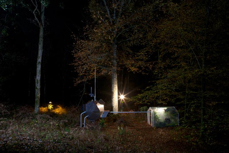 Then, filmed at night, we discover an automated scientific laboratory conducting research to do with plants and the ecosystem. Last of all, musicians playing the film’s sound track live in the woods, and having an artistic and musical experience.