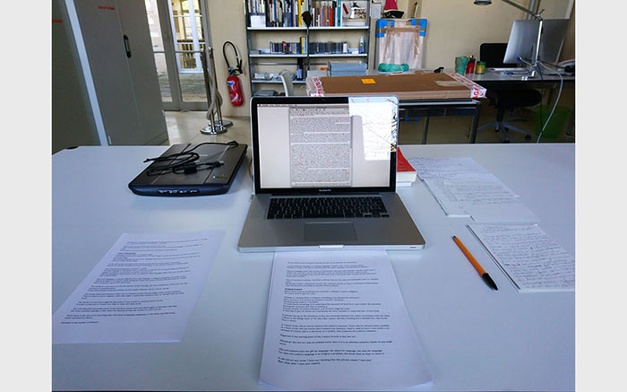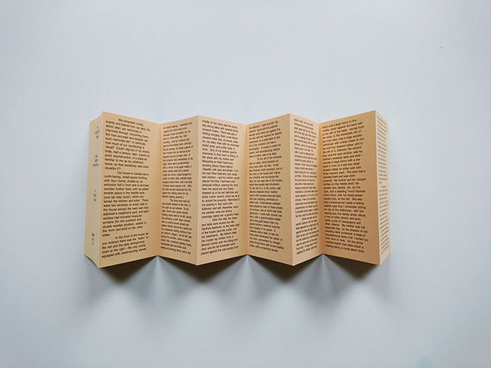 If the residency allowed me to further my research related to publishing and curatorial practices, it also allowed me to familiarize myself with and observe the intelligence of artists who, through publishing, manage to find appropriate solutions adapted to their practice. Whether it be self-financed publications, more or less cheap, via invitation or through partnerships with publishers that have greater means, I was able to see that these artists ask first of all about the physicality of the medium and the way in which that format is received or understood by the reader or viewer. As this is surely the biggest issue related to artist publishing. Whether it’s considered a space for exhibition, sharing, displaying, or work, publishing for artists means rethinking the way in which the book (as well as flyers, postcards, posters etc.) is traditionally apprehended, practiced and created. It’s a conception of the book that reflexively attacks the architecture directly and considers its pages as spaces in their own right. The page is no longer seen as a medium on which an image or text is printed but as a space that contains its constraints within itself. In The New Art of Making Books, written in 1975, Ulises Carrión seeks to redefine the book as a practice within his literary circle of the time. He believes that the book has changed, and speaks of “old books” when referring to former literary practices and “new books” when talking about contemporary literature. According to Carrión, stated in the first sentence of the work, “a book is a sequence of spaces”—a phrase that might seem anodyne but might also be seen to express any publishing practice.