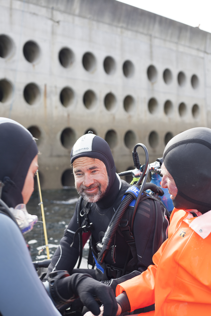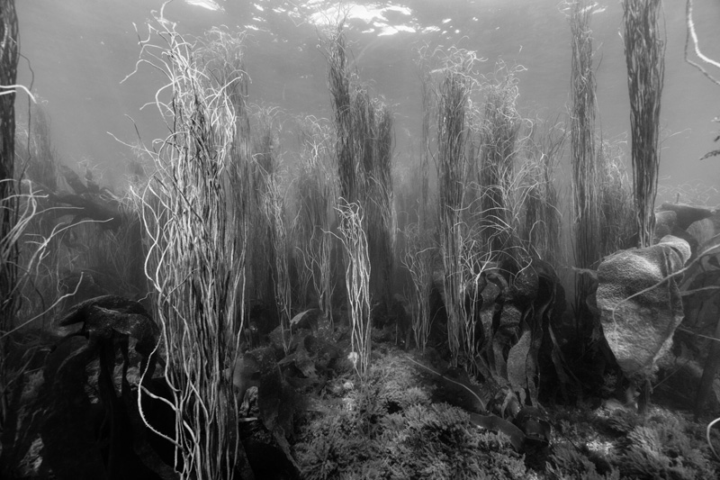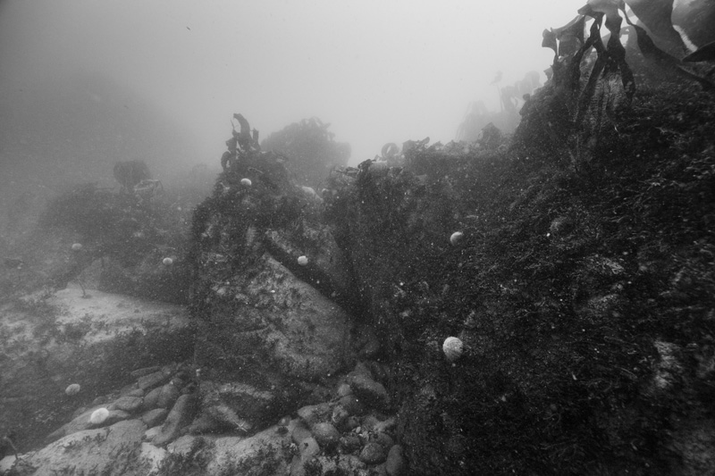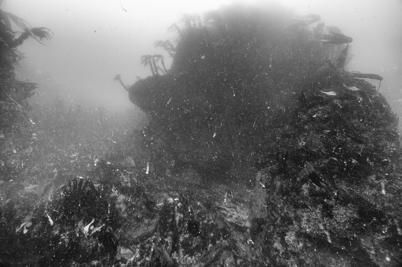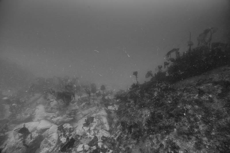 I’ve been observing underwater landscapes for a long time. The artificial reef project has enabled me to embark on an underwater photographic project. My research is leading me to ecosystemic studies of spaces in fact combining constructed spaces and natural territories. Artificial reefs are forms of architecture, elements built to be colonized and become habitats. Seascapes and the mass of water also represent flexible and moving habitats which can be reconfigured. Underwater photography often focuses on showing live animals, but few of the natural habitats and little of the vegetation making up underwater landscapes.
