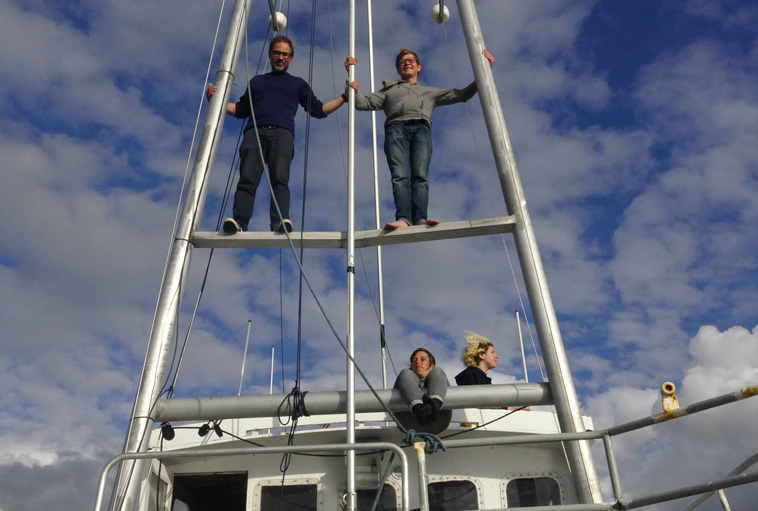 They were all confronted by the spirit of discovery and relocation of practices which are carried out on a boat on the move, but also during periods spend in harbours. This shipbound residency, but its very nature, focuses at once on questions to do with the notion of displacement, geography and time, but also of transmission and sharing