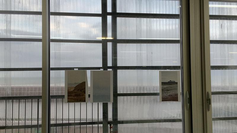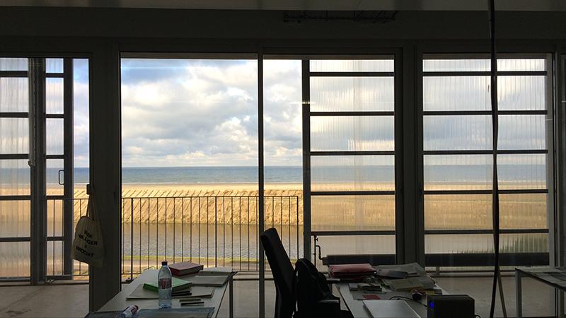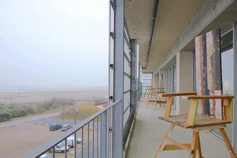 Visite scrupuleuse des étages du FRAC avec Keren Detton sa directrice et Elodie Condette. Emprunter les escaliers transparents et les coursives plutôt que les ascenseurs opaques. Une vue sur la mer du Nord dévorante, intrusive, hypnotique. Hors ville. Que faire de plus ?