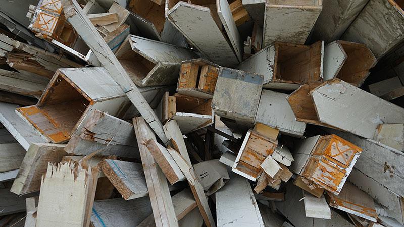 Les rebus des échanges globalisés deviennent bibliothèque de matériaux de construction. La caisse de transport, souvent citée par les artistes, apparaît comme un objet de métamorphoses, instable et poétique. Mais le conditionnement des denrées est également évoqué pour dénoncer les normes du travail et les corolaires écologiques du trafic maritime. S’appuyant sur les travaux de sept artistes, l’exposition interroge les effets de la libre circulation des biens et de l’information. Et la manière dont l’art peut donner corps à ces flux.