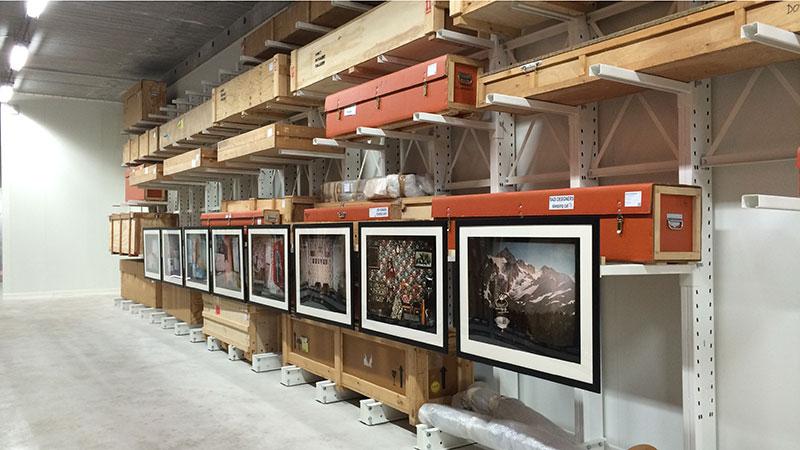 Le stockage d'œuvres précieuses, dans un lieu de stockage industriel, un port.