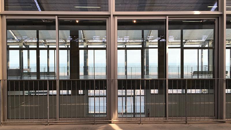 C'est comme une agrafe qui relie les deux bâtiments, l'ancien et le contemporain. C'est un lieu vitré qui permet de voir la partie balnéaire d'un côté et la partie portuaire de l'autre mais aussi l'intérieur en plongée de la cathédrale. C'est un espace suspendu, une indiscrétion sur l'espace urbain avec très peu de murs.