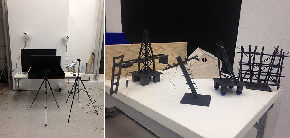 The miniaturization of the sets, scenes and installations assumed its full dimension during the large format screening, with the change of scale thus introducing a disturbing realism, somewhere between reality and fiction. The relation of scale in the representation of a form is a source of fiction, it makes it possible to have the impression of being faced with vast spaces, and thus creating imaginary and poetic worlds. The imperfections assumed in the preparation of models make it possible to introduce a doubt about the reality of the images thus engendered. Akin to the questioning of an artist like Magritte depicting “the treachery of images” in 1920, I nevertheless tend to make use of these representations without belittling the share of imagination and dream contained by the making of these true-false images. What is involved, for me, is re-defining the world that surrounds us, wondering about the authenticity of the images submerging us, re-defining the shams, decoys and simulations which are invading our lives, infiltrating all the spheres of society until a virtual world, more real than reality, is created. Special attention is paid during the editing, in fact, and this latter will determine the pace of the video film and the transitions. The editing is part of the narrative plot of the video film, it can present lengthy sequences and set up an ambience, a mood, a contemplation, as well as short sequences based on cuts, and create events and punctuations in the video film. A storm, for example, can rise up out of a calm, smooth sea. The editing will create the pace, and set up the film’s events and punctuations.