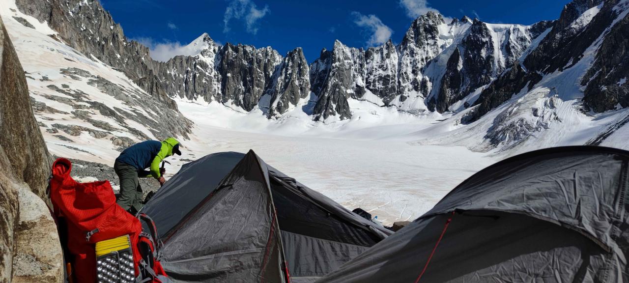 Des enregistrements sonores sont réalisés en altitude pour composer à partir des sons de la Terre et de la montagne en pleine transformation géomorphologique. L’objectif de ce travail collaboratif, avec Vincent Malassis, est de créer la bande son du film et de tourner un Concert pour les glaciers sur un balcon naturel. Nous sommes à 3300 m d’altitude, surplombant de 200 m le glacier du cirque d’Argentière. La muraille qui nous entoure est constituée par les faces nord imposantes des sommets du mont Dolent, de l’aiguille de Triolet ainsi que les Courtes, les Droites et l’aiguille Verte, côtoyant les 4000 m d’altitude.