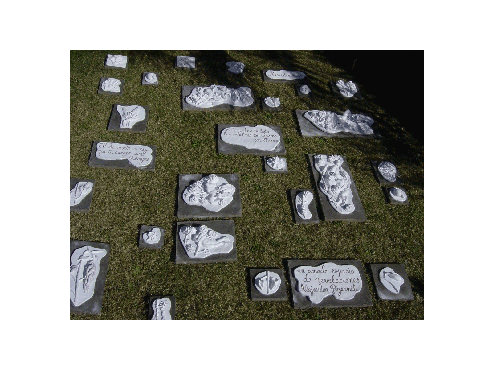 The ceramic works, in conversation with the poem by Alejandra Pizarnik, were installed in situ.