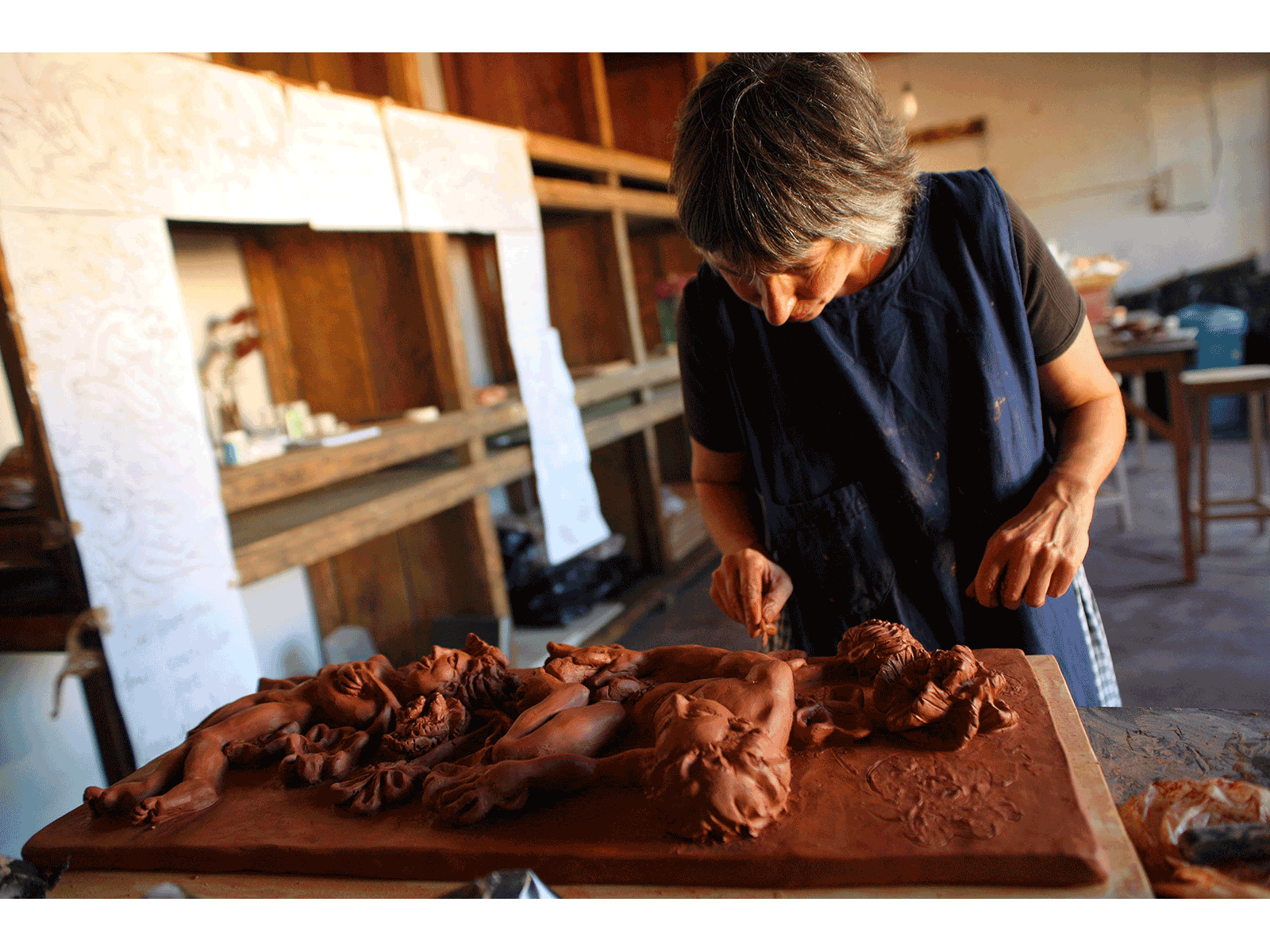 The kiln was renovated, an enormous worktable was set up at the studio, a ton of clay was brought in by boat from Aubagne five months prior to my residency.