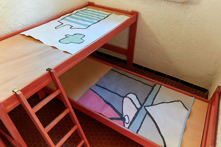 Aujourd'hui, les familles occupent des petites maisons-bungalow, plus intimes et autonomes, recouvertes de tuiles oranges et de crépis rose, jaune, ocre. Dans une esthétique architecturale des années 1970-80, elles se fondent très bien dans le paysage local ; les pins maritimes ponctuent les allées pour garantir une ombre salvatrice aux plus chaudes heures de l'été. Tout est conçu et aménagé spécialement pour les familles, depuis le programme d'activités, aux équipements (cantine, piscine, médiathèque...), jusqu'aux petits chemins qui serpentent entre les maisons pour rejoindre les lieux collectifs et la plage. C'est cet environnement esthétique, contextuel et social qui a inspiré Victoire Barbot pour proposer des œuvres à partir des matériaux récupérés sur place.