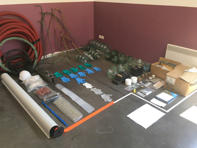 - des éléments propres à l'industrie gazière et électrique : câbles, tubes en cuivre et tuyaux divers, têtes de transformateurs électriques ; compteurs ; isolateurs en verre ; casques ; gants...