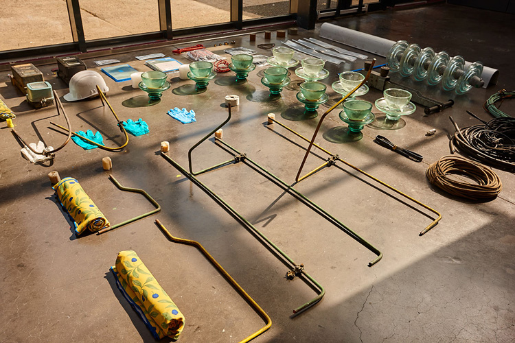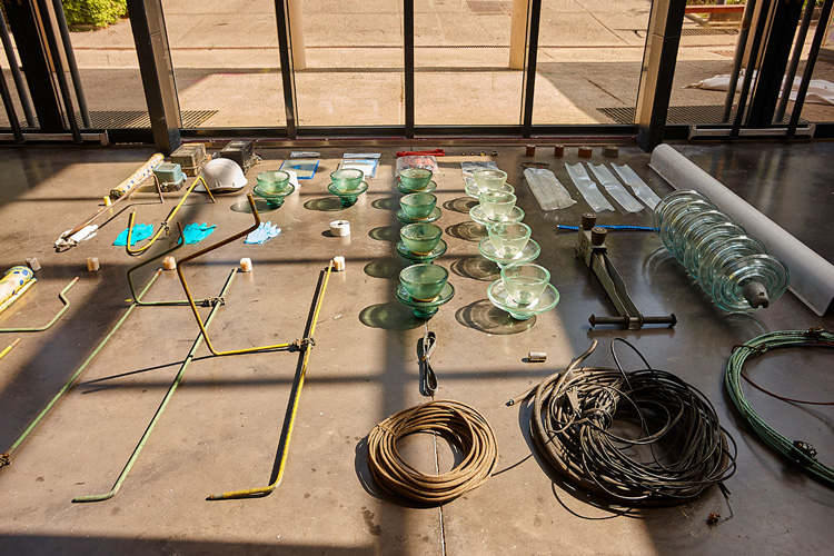 Avec la consigne "Je récupère tout ce qui ne vous sert plus", des animateurs-vacanciers ont accompagné l'artiste à la découverte du site ainsi que dans un lieu de stockage de matériel usé d'EDF. Ils lui ont permis d'avoir accès à des matériaux parmis lesquels :