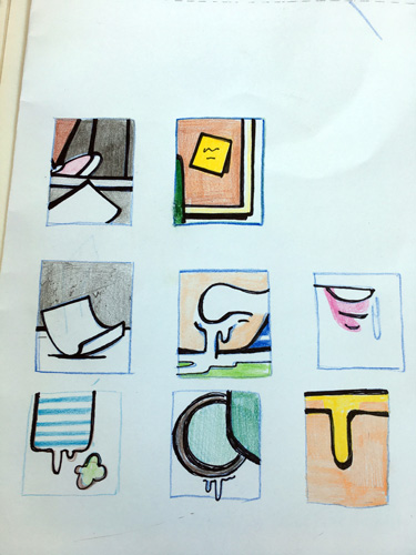 Les nouvelles images produites par l'artiste proviennent de la brochure et sont des extraits de visuels dans lesquels était représenté l'élément eau. Ici une larme, de l'eau qui coule d'un hublot de machine à laver, de la salive... Un répertoire de formes qui fait écho avec le principal matériau utilisé dans l'industrie électrique : l'eau.