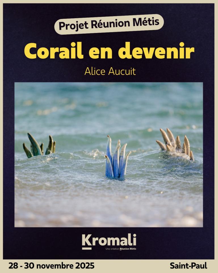 « Les sculptures corail d'Alice Aucuit se sont échappées de l'installation Corail en devenir pour s'immerger dans la piscine municipale de Saint-Paul. Un rappel puissant de la porosité entre réel et imaginaire. Un symbole du passage de la fiction à la réalité »