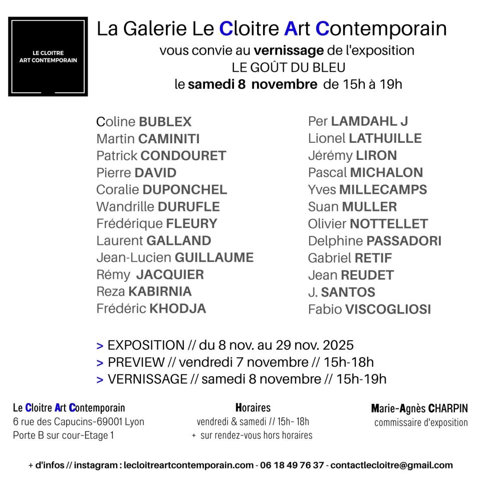 La galerie Le Cloitre Art Contemporain vous convie au vernissage de l'exposition collective "Le goût du bleu" le samedi 8 novembre de 15h à 18h en présence des artistes.