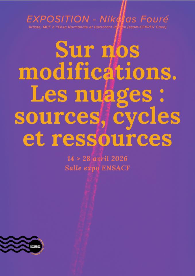 Les nuages sont des formes de l'eau. Nous habitons avec eux et leurs représentations sont construites autant par l'art que par la science. L'exposition s'inscrit dans une recherche-création mêlant écologie, arts et sciences humaines. Par ce motif central qu'est le nuage, Nikolas Fouré, Artiste, MCF à l'Ensa. Normandie et Doctorant Radian (esam-CERREV Caen), questionne nos relations à l'eau et aux territoires. Interroger la représentation des nuages, c'est aussi sonder nos imaginaires.