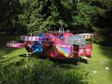 L’œuvre d’Andreas Kressig est de celles qui s’habitent, se donnent à vivre autant qu’à voir. Depuis les années 1990, c’est une invitation à exposer qui enclenche la construction d’une nouvelle pièce. À partir d’assemblages de matériel de récupération et d’objets aux provenances plurielles, il crée des espaces dans lesquels on est conviés à entrer, tels que les véhicules, terriens ou volants, réalisés ces dernières années (KAROS, 2020 ; LOCO, 2021). Leurs structures sont activées par l’expérience physique du public, qui éprouve des moments de partage, de fête ou d’amitié. Perchée en haut d’un parc, ENVELOP (2022) se présentait comme un curieux vaisseau spatial. En son cœur, l’artiste proposait des dégustations diurnes de thé, et nocturnes de saké et poisson grillé. Cet art de la convivialité est non sans lien avec son amour pour le Japon, où il a suivi des études doctorales en Media Art (2003-2006) et séjourne régulièrement depuis.