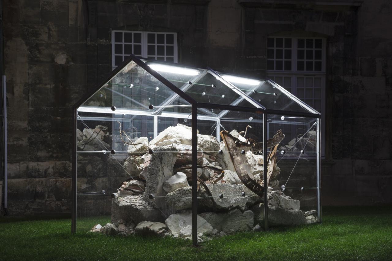 Anne Houel fait matière de l’architecture à travers le prisme du temps et de l’histoire. L’artiste propose une œuvre sensible faite de formes empruntées et de matériaux bruts pour offrir de nouvelles perspectives aux ruines de l’histoire moderne. Les forces opposées de la dé-construction et de la re-construction, de la présence et de la disparition, du point de rupture et de la résilience, sont les terrains de jeux de son travail qui détourne les codes et les processus de constructions.