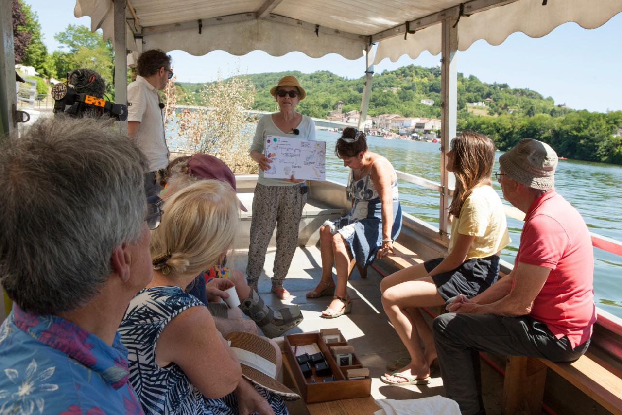Prototype 1 : Le ponton des pêcheurs, juillet 2022. Vue de la mise à l’eau de la première flottille dans le cadre la fête de l’eau « Sensations sur le Lot » à Saint-Sylvestre-sur-Lot et Penne-d’Agenais
