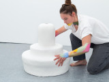 Chez Eva Taulois, tout est affaire de matière et de surface : la profondeur d’un velours, les reflets synthétiques d’un plastique, la rugosité du crépi... les couleurs occupent également une place à part entière : flamboyantes, elles créent une rythmique et une atmosphère accueillante pour le visiteur.