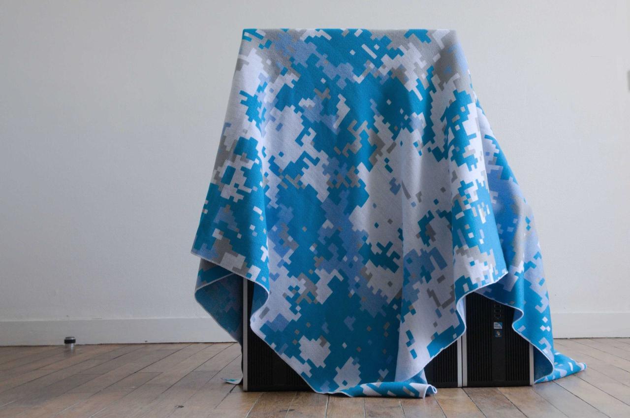 Ordinateurs modifiés et couverture tissée.Dimensions variablesProduction : 40mcube