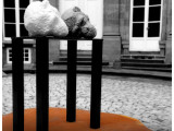 On retrouve également toujours dans l’œuvre de Roland Cognet une fascination pour l’objet tel quel, sa présence immédiate, son irréfutabilité, sa pesanteur et sa distanciation nécessaire. Toute la poésie de Roland Cognet repose dans cet interstice là. Tête de singe, de gorille ou de cheval en bronze, où l’on devine dans le modelage chaque passage des doigts du sculpteur, perchée sur un piédestal tel un buste antique, tronc d’arbre en résine posé comme en apesanteur sur un billot de bois, if monumental dont la cime est en ciment. Jeu de socle ou d’échelle autant que de matériaux qui transposent la "copie" du réel en œuvre d’art." [...]