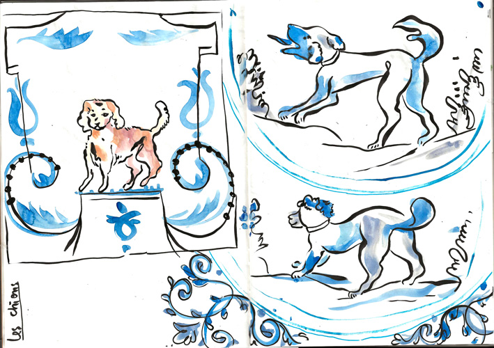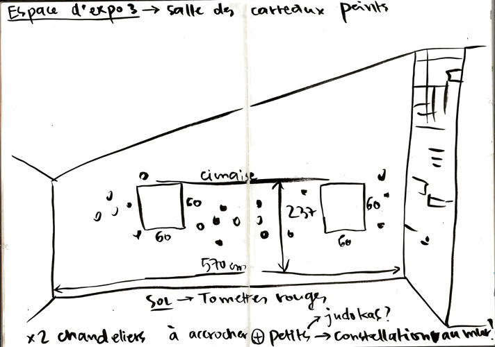 À partir des croquis de son carnet qu'elle considère comme une œuvre à part entière dans ses projets, Camille Chastang réalise un papier peint qu’elle imagine au sein d’une installation commune.