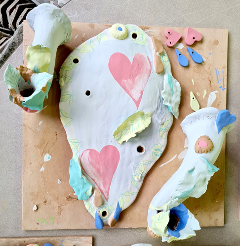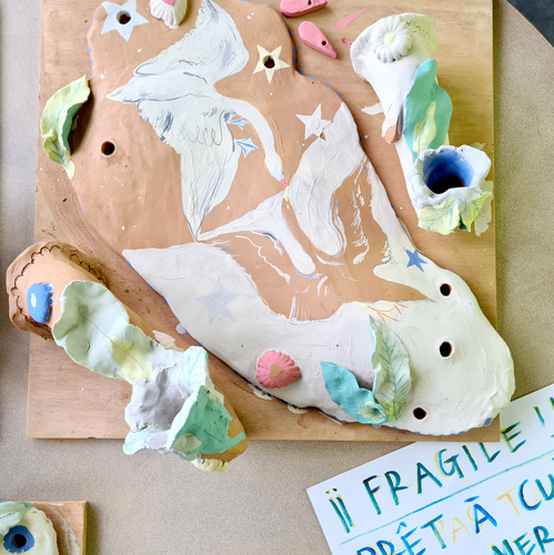 L’artiste Camille Chastang travaille à la frontière des beaux-arts et des arts appliqués, elle s'attache à produire une œuvre qui s'émancipe des hiérarchies de catégorie. Ainsi du carnet de dessin à la peinture, de la céramique à l'installation en passant par l'édition, elle revendique une expérimentation ouverte, débordante.