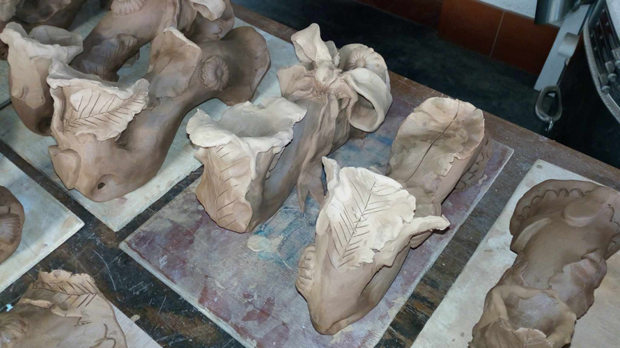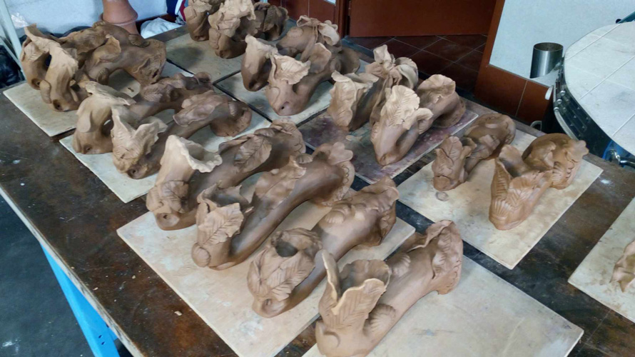 En effet, la terre n'est pas facile à modeler, elle est généralement travaillée au tour ou de façon plane pour en faire des tommettes ou des objets usuels très résistants. Elle a la propriété de sécher très rapidement au soleil, ce qui permet à l'artiste de produire un grand nombre d'éléments.