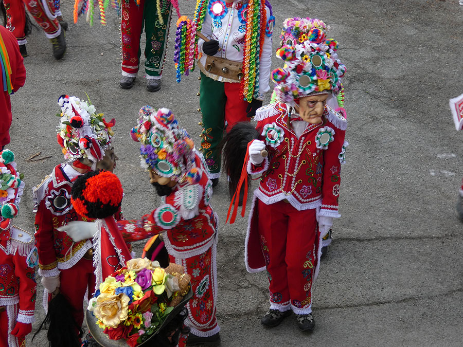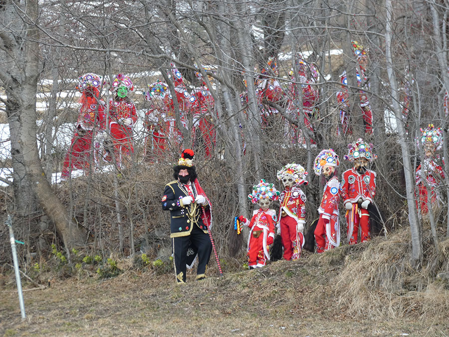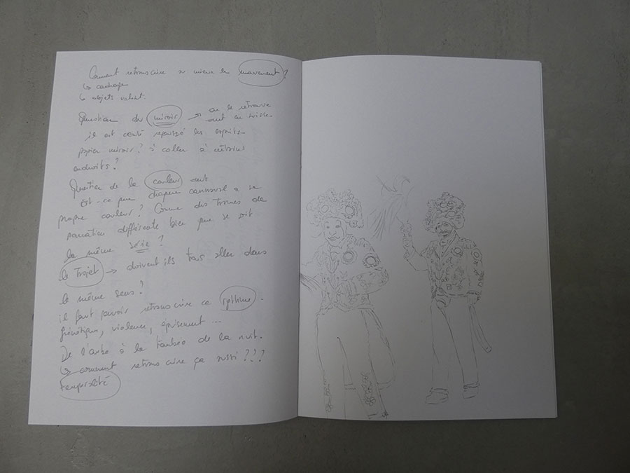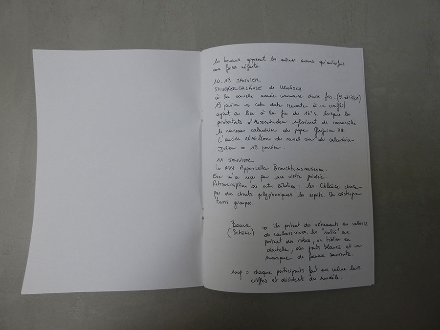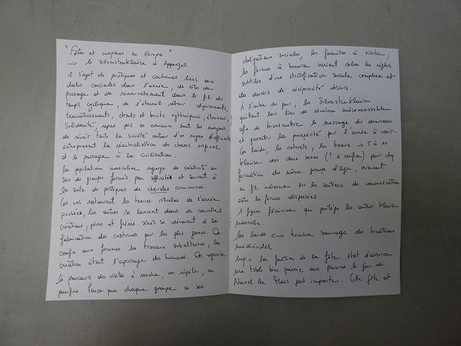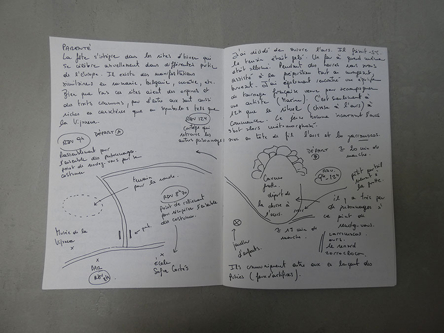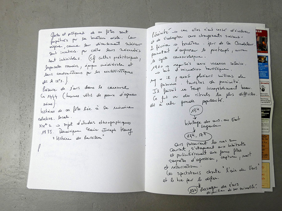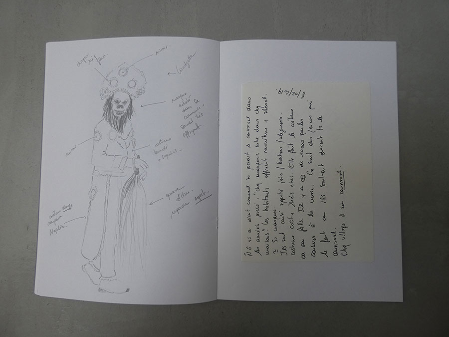 Il a été question d’archiver directement les données de l’invraisemblable mixage (costumes, masques, déroulé des rituels, carambolages temporels, etc), de rencontrer les diverses institutions culturelles, puis de collecter les témoignages des habitants acteurs ou spectateurs de ces rites en les accompagnant à travers les rues des villages en observateurs discrets.