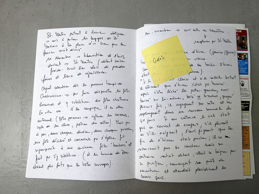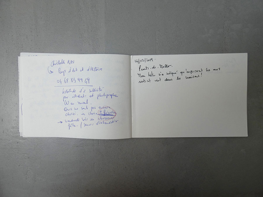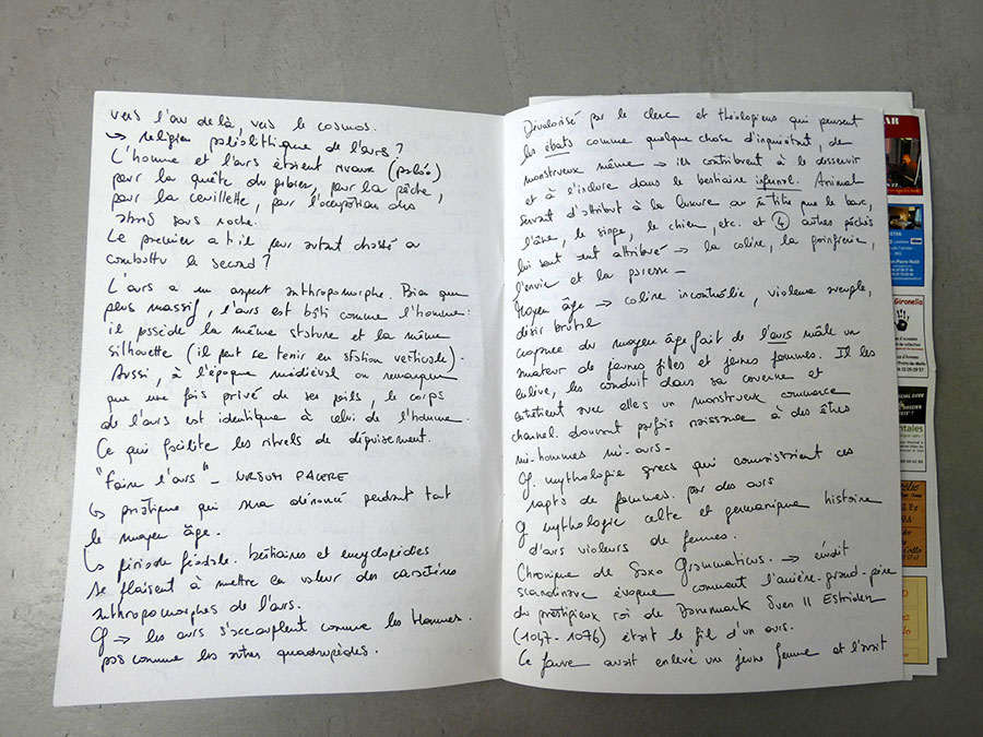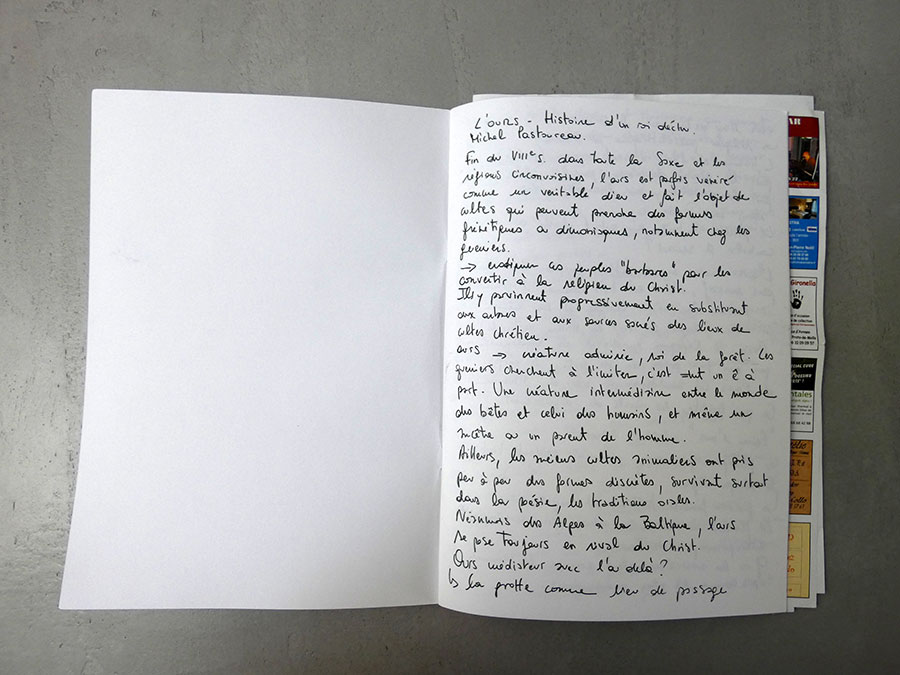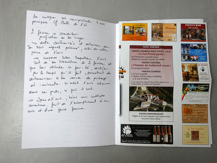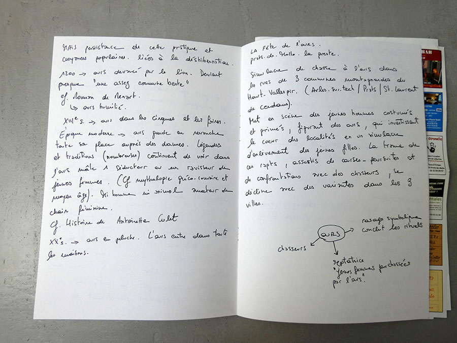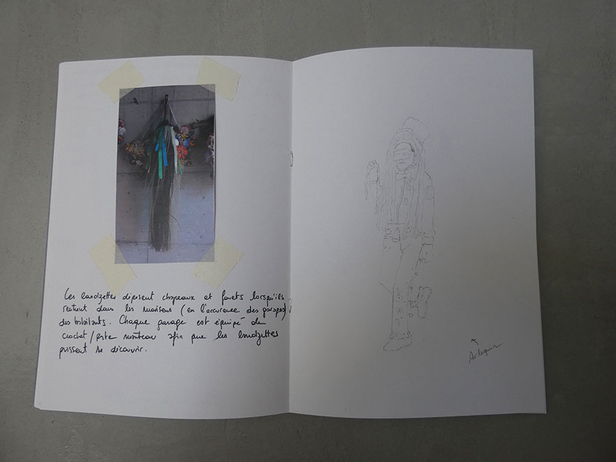 Mes dessins naissent d’un long travail de recherches iconographiques composé de clichés amateurs et personnels, cartes postales, images découpés dans des magazines, etc, constituant ainsi depuis la sortie de l’école un véritable vocabulaire de formes personnel. Ces voyages m’ont permis de m’affranchir des pages imprimés. Le circuit en immersion que ce projet a déployé constitue à ce jour un nouvel outil pour ma pratique et inscrit mes recherches dans un dessein plus ambitieux.