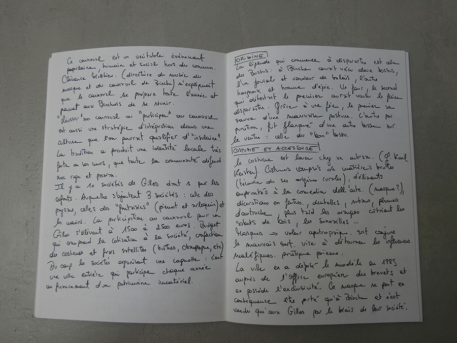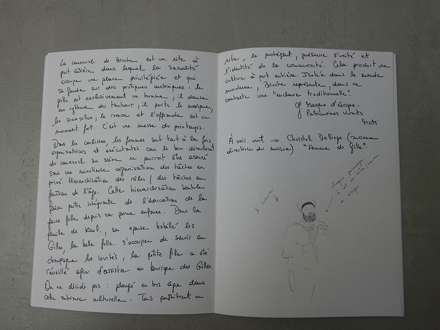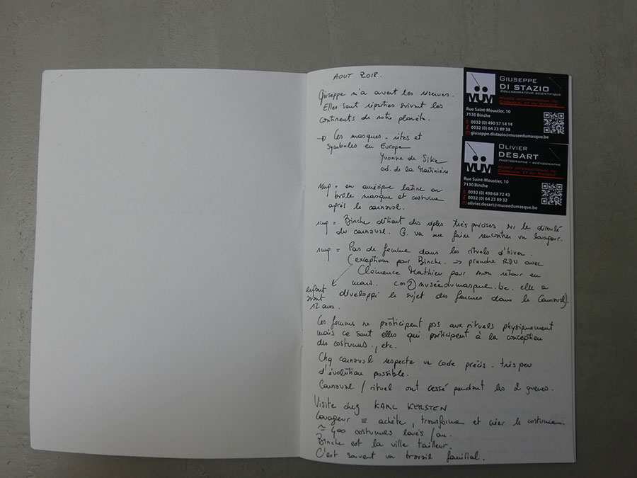 Prise de contact / rendez-vous : Musée international du carnaval et du masque, Binche, Clémence Mathieu et Guiseppe di Stazio.