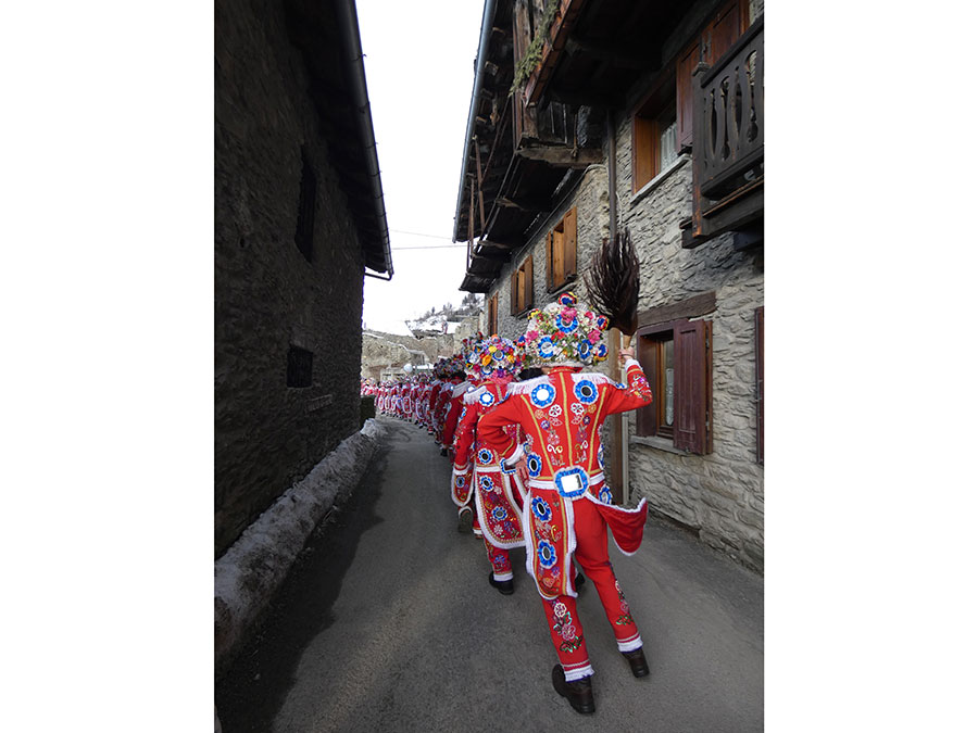 9 février / Allein, Vallée d’Aoste, Italie / La coumba freida / Il s’agit de chasser les courants d’air néfastes à l’aide de fouets en queue de mulets.
