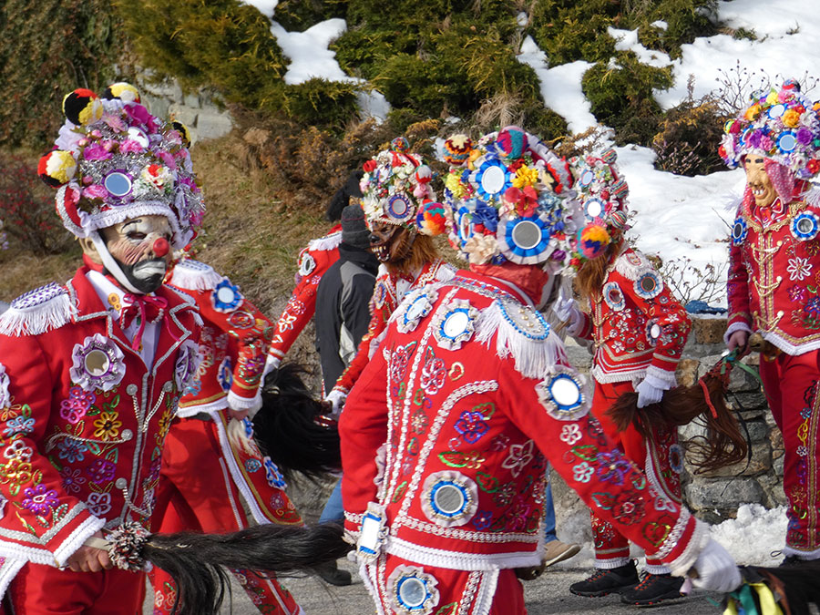 Aujourd’hui, acteurs et spectateurs évoquent le besoin de perpétuer un rite ancestral et propre à leur communauté. Pourtant, il y a eu très souvent des interruptions dans le courant du XXième siècle, les jeunes garçons en charge de ces rituels ayant désertés les campagnes. Les mascarades auxquelles on peut assister aujourd’hui sont des relances ou des réinventions. Pour certains ils s’inspirent non seulement des groupes voisins, mais aussi, grâce à internet, des masques du monde entier ou de la culture de masse occidentale (films d’Heroic Fantasy, héros, etc). Mais c’est avec vigueur que les participants locaux actuels diffusent un même discours avec conviction : « chasser l’hiver ou assurer la victoire de la vie sur la mort »3.