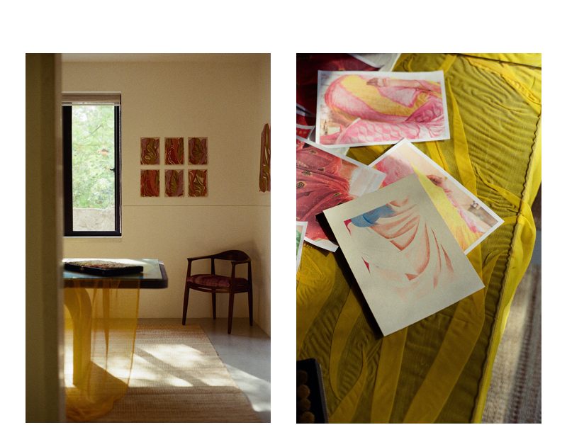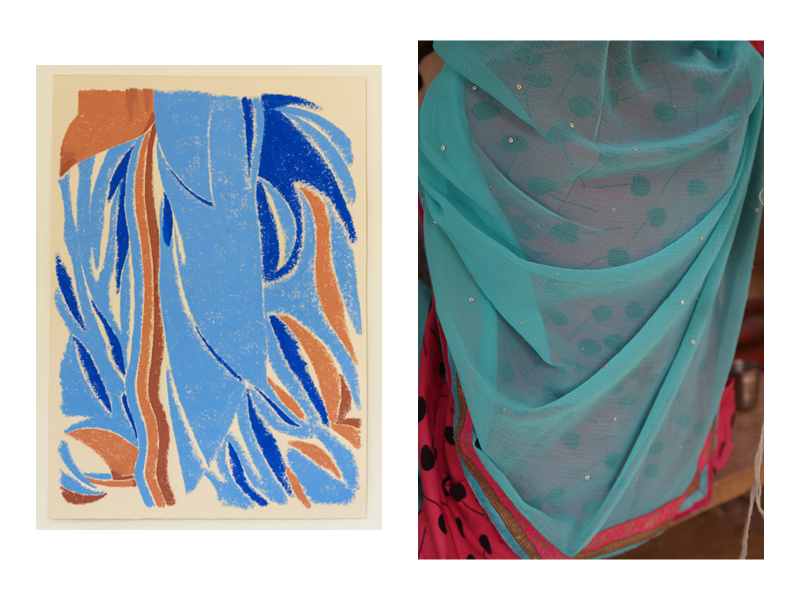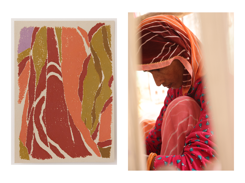Artiste franco-ukrainienne diplômée de l’ESAD Orléans en 2019, Elvira Voynarovska vit et travaille en région Centre-Val de Loire. Elle explore la pratique du dessin contemporain sous différentes formes, qu’elle déploie au fil de commandes, d’expositions, de collaborations et de résidences. Lauréate en 2025 de la Villa Swagatam, programme de résidences initié par l’Institut Français en Inde, elle développera de février à avril 2025, à Jaipur, un projet protéiforme en collaboration avec la marque Jaipur Rugs et des artisanes tisseuses locales. Elle revient à travers ce carnet de résidence sur son expérience là-bas, dans un entretien avec Claire Henry, coordinatrice générale du Réseau documents d’artistes.