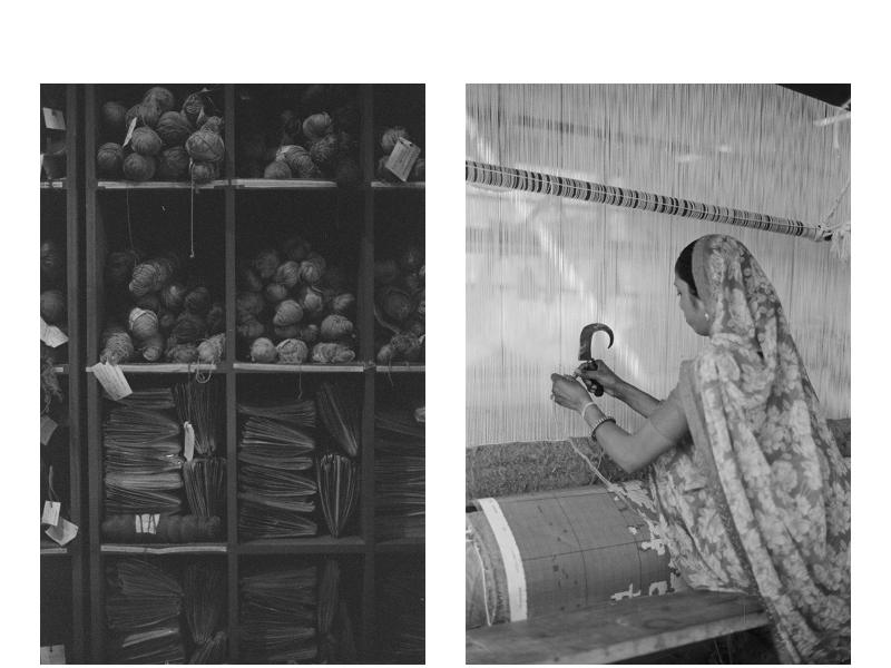 Un des partenaires de l’Institut Français, dans le cadre de la Villa Swagatam, c’était l’entreprise Jaipur Rugs. C’est une entreprise familiale, mais qui a aussi une dimension internationale — ils exportent dans le monde entier. Plus de 40 000 tisseuses travaillent pour eux à travers l’Inde. Je voulais absolument collaborer avec eux, et ça s’est fait assez naturellement : j’ai postulé, on a échangé sur ce que je voulais faire, et sur leurs envies artistiques.