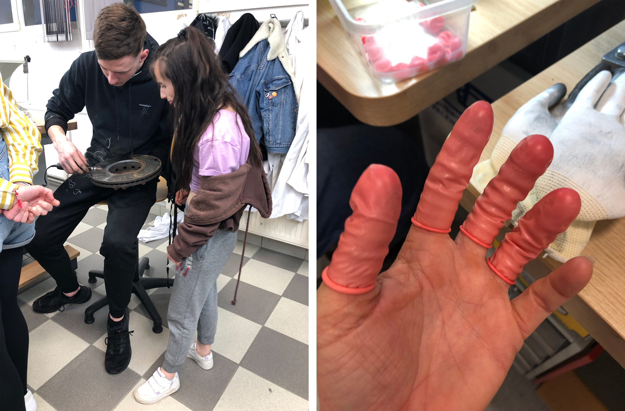 — Gaëlle : Il y a évidemment les conseils techniques, même les 1ère année de CAP pouvaient répondre à mes questions de novice quand j’étais aux machines. Plus largement, j’ai beaucoup discuté avec elles et eux de leurs motivations pour ce métier, de leurs conditions de travail (ils et elles sont tou·tes en alternance dans des usines). C'était une occasion de plonger dans l’univers d’un lycée pro aujourd’hui, les problématiques de recrutement des profs, de gestion économique, de comprendre aussi les univers psychologiques et politiques de ces jeunes. Mon travail se nourrit de l’envers du décor et de l'immersion dans des milieux sociaux, professionnels, associatifs très différents, cela agit comme un détonateur.